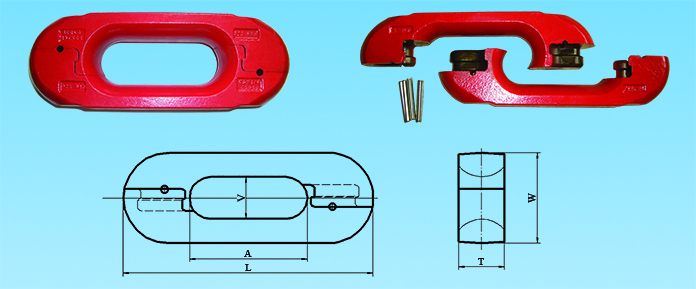 帕森斯V锁宽带式接链环专门用于连接宽带圆环链,制造过程中选择了富含Cr、Ni、Mo合金元素的高合金钢和多重热处理工艺,具有非常高的拉伸性能和疲劳寿命。