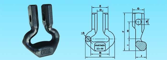 马蹄式接链环专门为连接双边链而设计,其外型大小符合MT/12718的标准要求,在制造过程中选择了富含Cr,Ni,Mo 合金元素的高合金钢和多重热处理工艺,以确保与链轮的配合,安全运行,并从而保证得到了优良的机械性能与疲劳寿命。